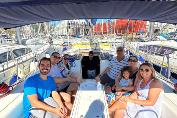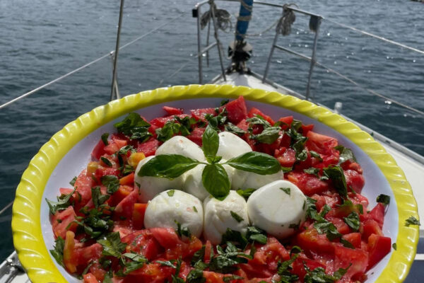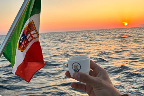 - All’arrivo a bordo, l’equipaggio accoglierà gli ospiti con frutta fresca di stagione, focaccia ligure e calici di Prosecco.
