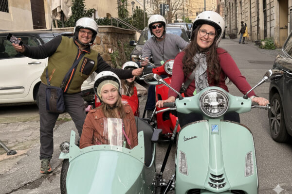 Inizia la giornata con il piede giusto: sali a bordo dei nostri Vespa sidecar per un tour della città emozionante e indimenticabile di 90 minuti.